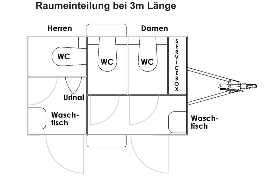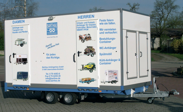 Sauberkeit und Hygiene an jedem Ort mit mobilen Toiletten-Anhängern. Je nach Veranstaltung kann zwischen verschiedenen Größen gewählt werden. Feste bei denen während einer Pause viele Benutzer gleichzeitig kommen, benötigten mehr Kabinen. Unser Kleiner ist ideal für Geburtstagsfeiern oder Hochzeiten und Polterabende.